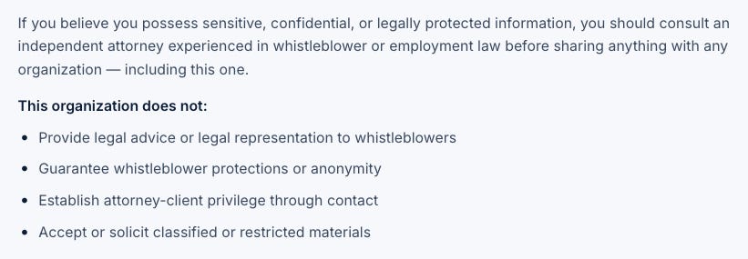Dane has called for FULL WHISTLEBLOWER PROTECTION. That is the only way we will actually get any transparency about what’s happening. People are afraid to come forward.