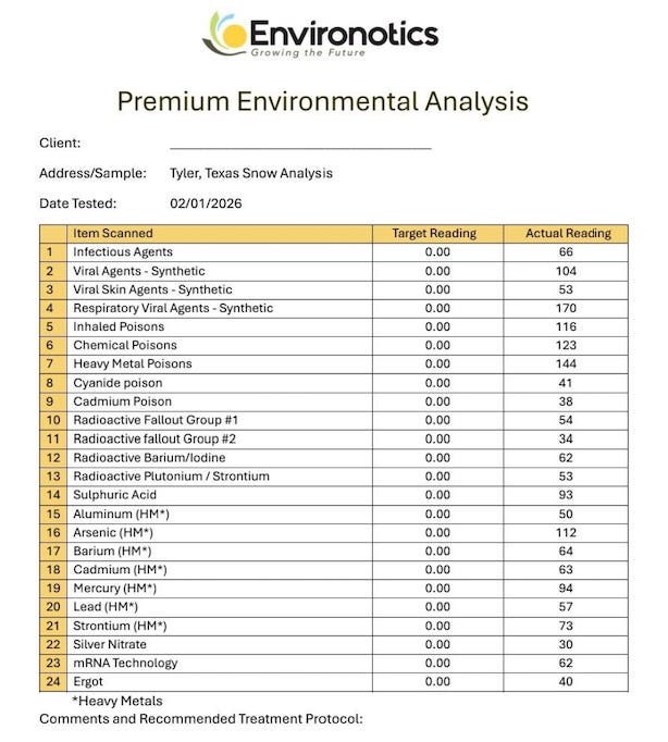 As I spelled out in my last substack article, he claims to have identified “Chemical poisons.” A reading of 123. What does that mean? Where are the units of measurement? What do the “readings” mean? Any good scientist would ask: “What are the specific chemicals?”